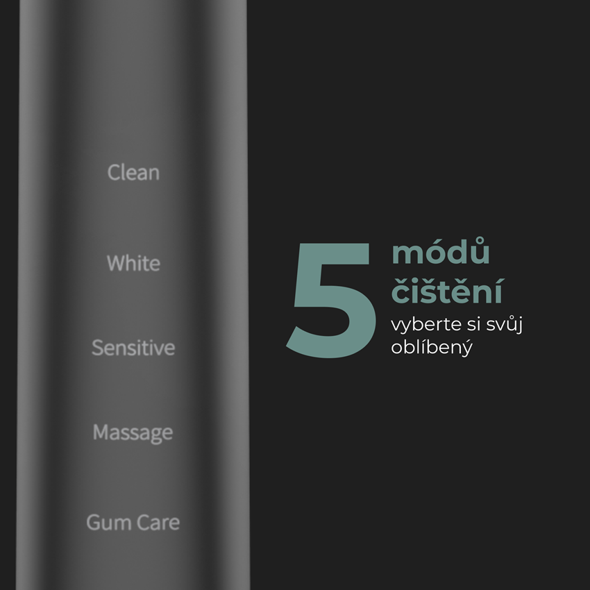 Režimy: 5 (Čistící, Bělící, Masážní, Pro citlivé dásně, Pro péči o dásně)