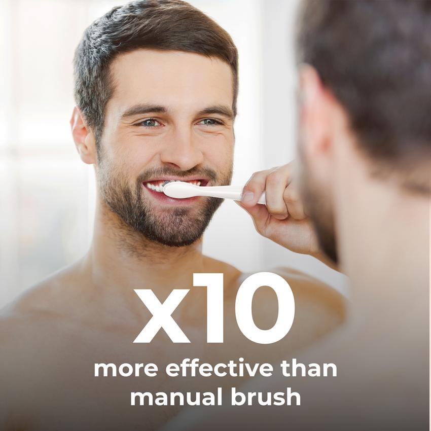 V důsledku vysokofrekvenčních vibrací o rychlosti 30 000 pohybů za minutu se ze zubní pasty a biologických tekutin uvnitř ústní dutiny vytváří okysličená jemná pěna, která proniká do těžko přístupných míst a odstraňuje zubní plak