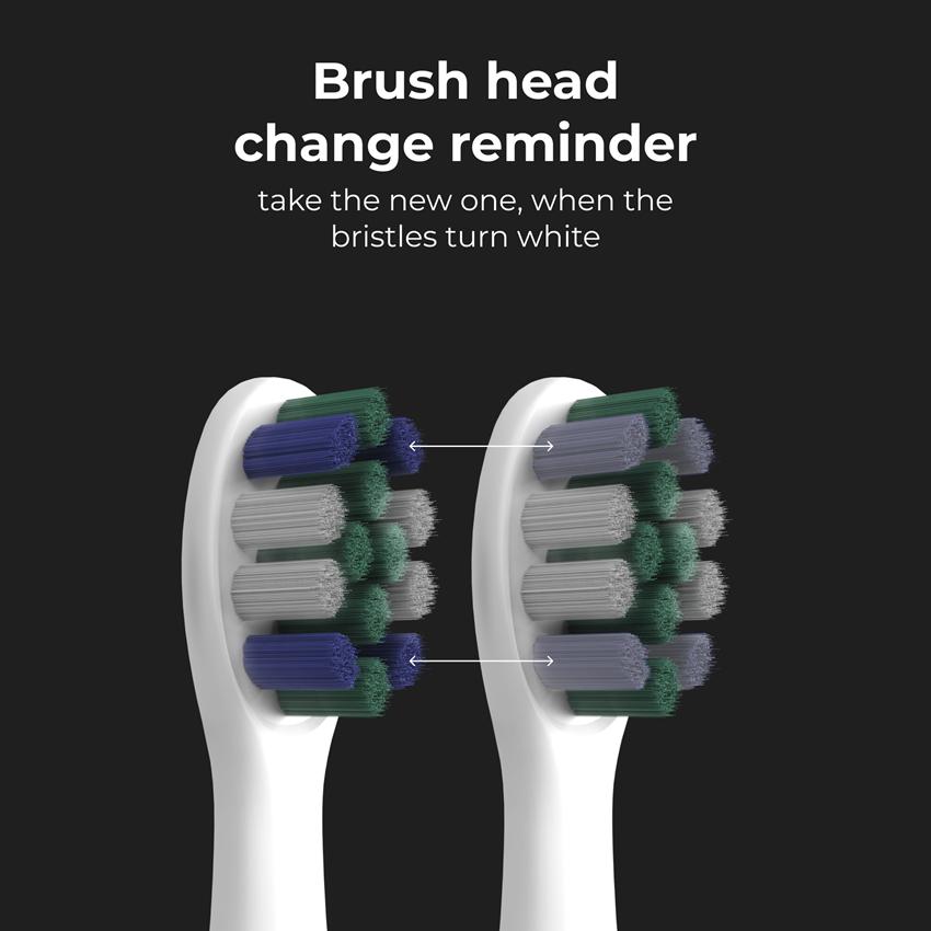 Vždy poznáte, kdy je třeba vyměnit hlavu kartáčku: jakmile modré indikační štětinky zbělají, je nejvyšší čas