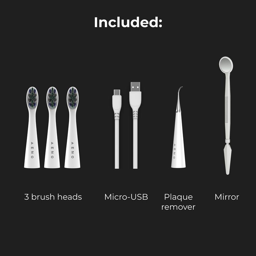 AENO Elektrický kartáček DB8 - 30000 RPM, 3 módy, 3 hlavice, zrcátko, čistící nástroj, Bílá