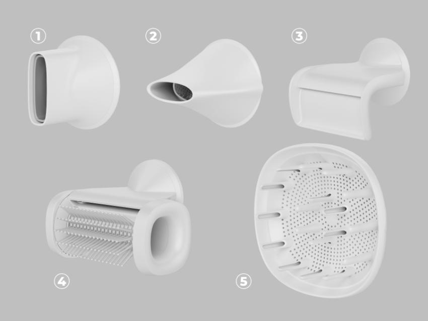 Fén AENO HD5 nabízí všestranné možnosti úpravy vlasů díky pěti snadno vyměnitelným magnetickým nástavcům: