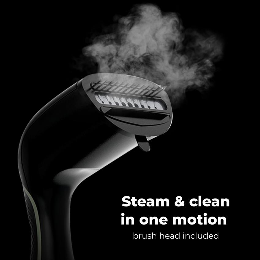 Součástí balení je speciální kartáč, který současně odstraňuje vlasy nebo drobné nečistoty a napařuje oblečení. V případě potřeby lze vyjmout.
