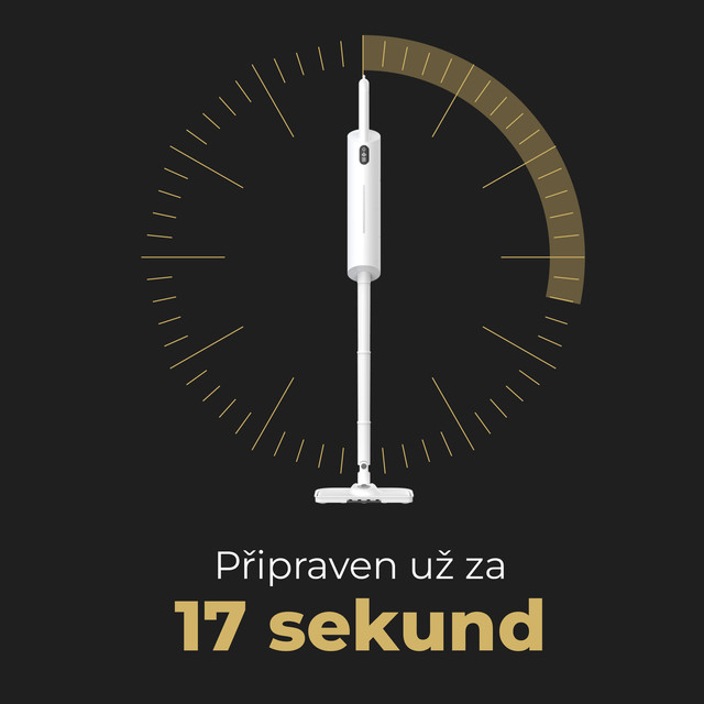 Parní mop vás nenechá čekat a je připraven k použití za 17 sekund.