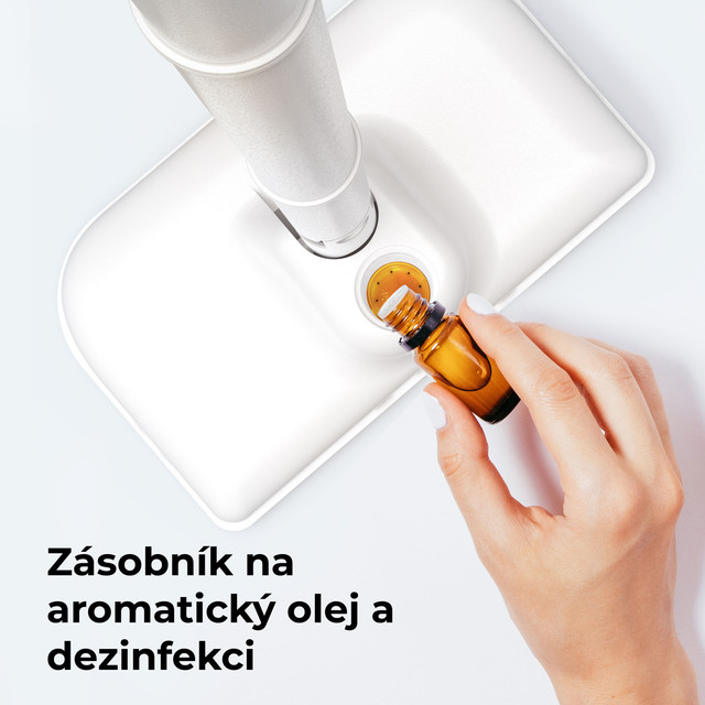 Přidejte svůj oblíbený aromatický olej nebo čisticí dezinfekční prostředek přímo do trysky. Stačí jen pár kapek.
