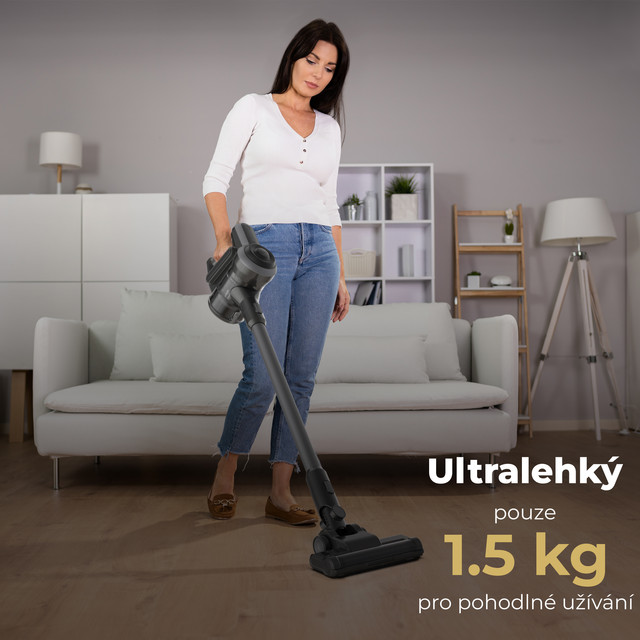 Tyčový bezdrátový vysavač SC1: turbokartáč, hlavice s LED osvětlením, nastavitelná velikost a snadno se s ním manipuluje, omyvatelný filtr