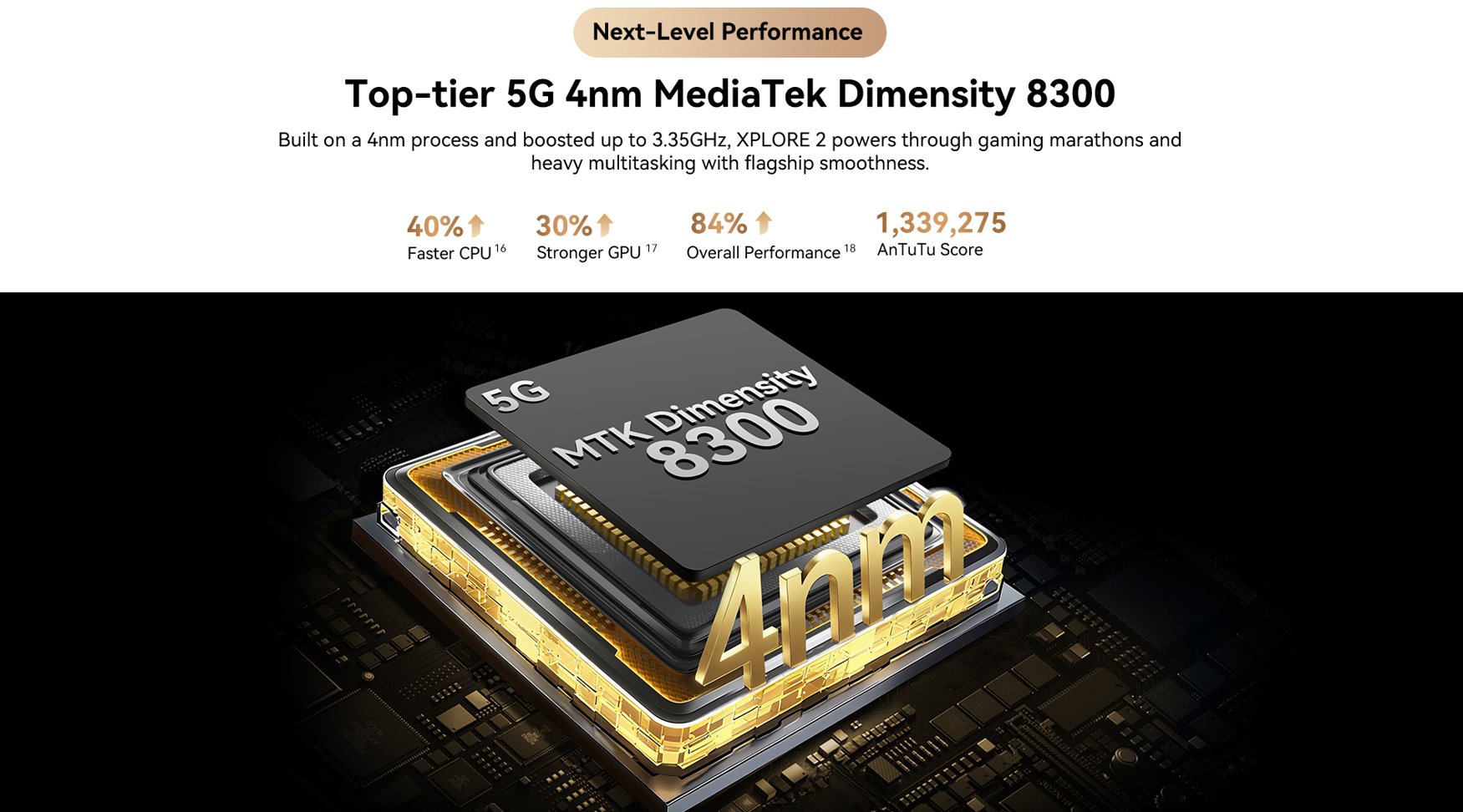 - CPU: MediaTek Dimensity 8300, 4nm (8 jader, až 3.35 GHz)