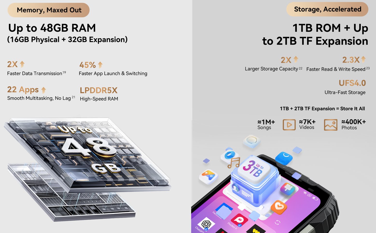 - Vnitřní úložiště: 256 GB / 1 TB UFS 4.0