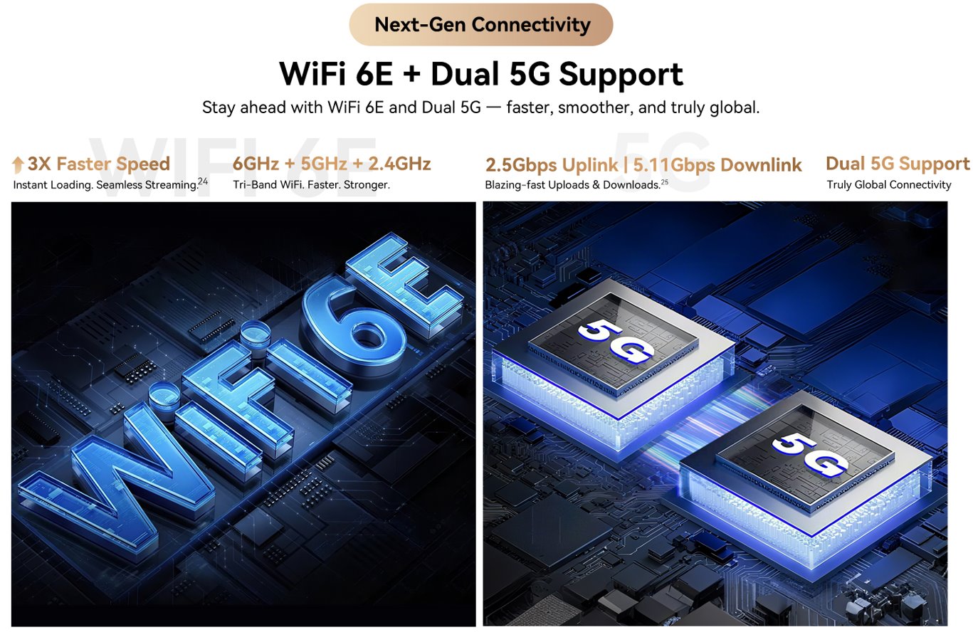 - Wi-Fi: Wi-Fi 6E (2.4/5/6 GHz)