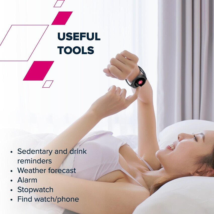 Zdravotní a sportovní funkce vás udrží v kondici i v obraze. Hodinky měří srdeční tep, hladinu kyslíku v krvi (SpO2), stres i kvalitu spánku. Nabízejí 123 sportovních režimů, ženský kalendář a připomínky pohybu. Díky Bluetooth volání, hlasovému asistentovi a notifikacím z aplikací zůstanete ve spojení i bez telefonu v ruce.