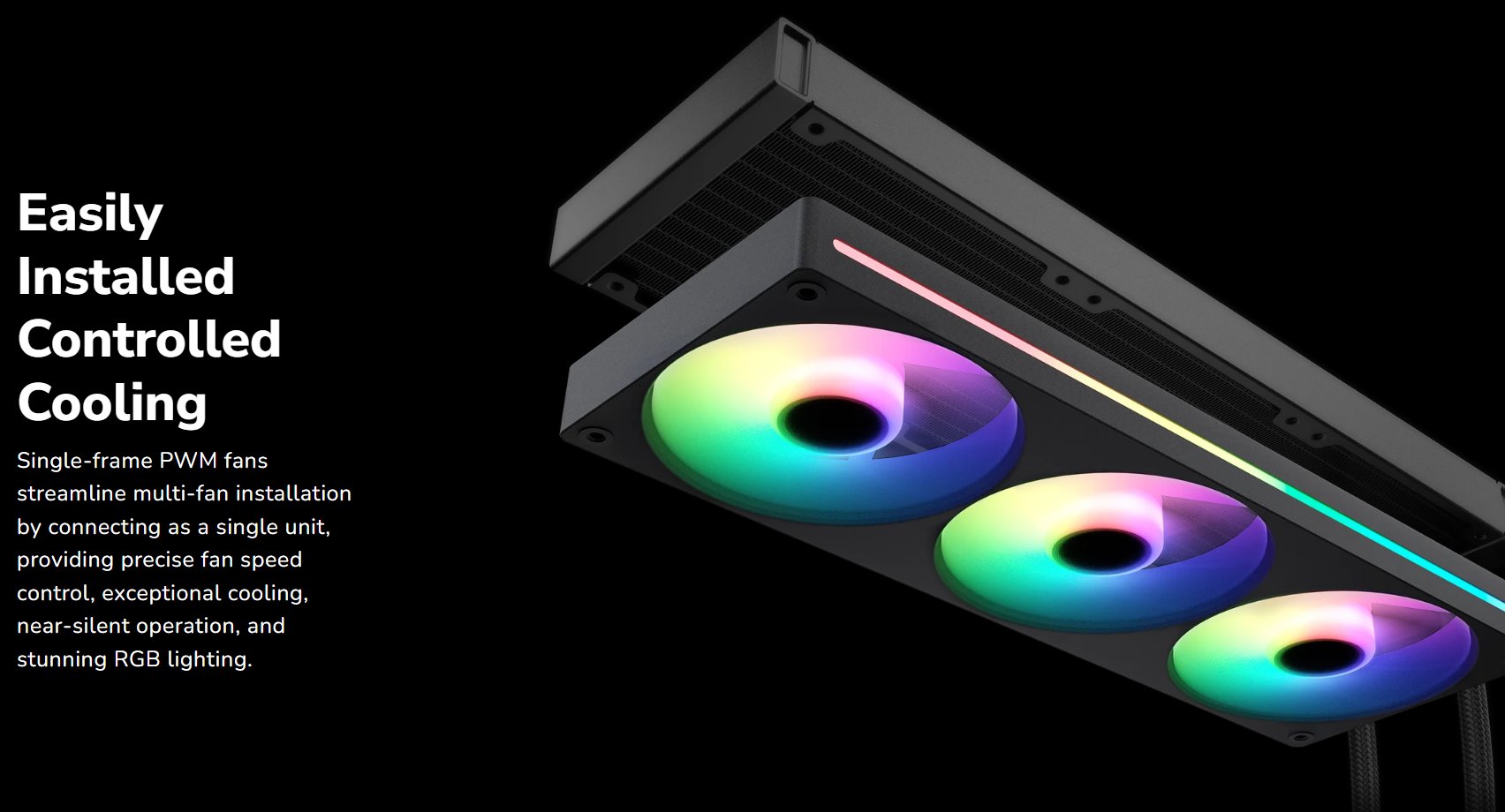 Jednorámové ventilátory PWM zjednodušují instalaci více ventilátorů tím, že se připojují jako jedna jednotka, poskytují přesné řízení otáček ventilátoru, výjimečné chlazení, téměř bezhlučný provoz a ohromující RGB osvětlení.