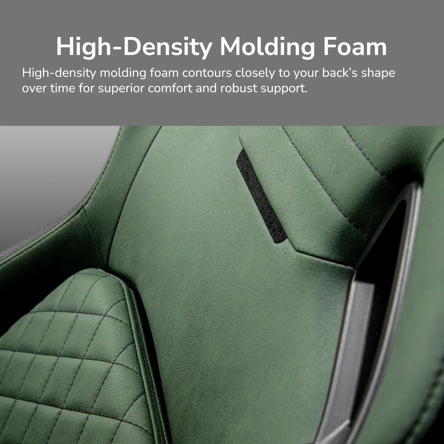 Vysokohustotní tvarovaná pěna v opěradle zajišťuje dlouhodobý komfort a zachování tvaru i při intenzivním používání.