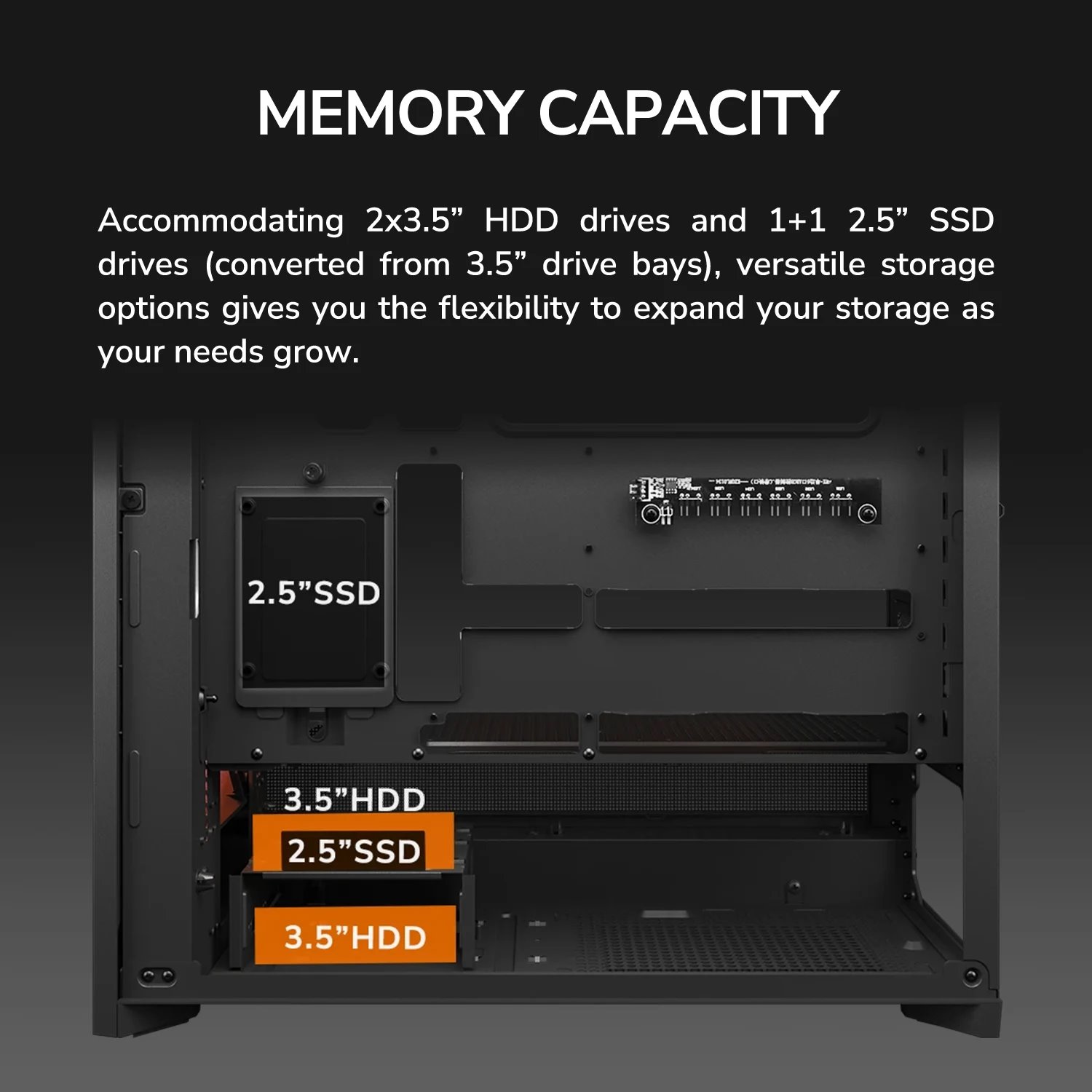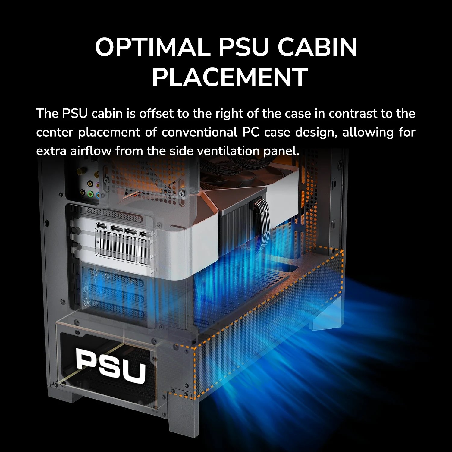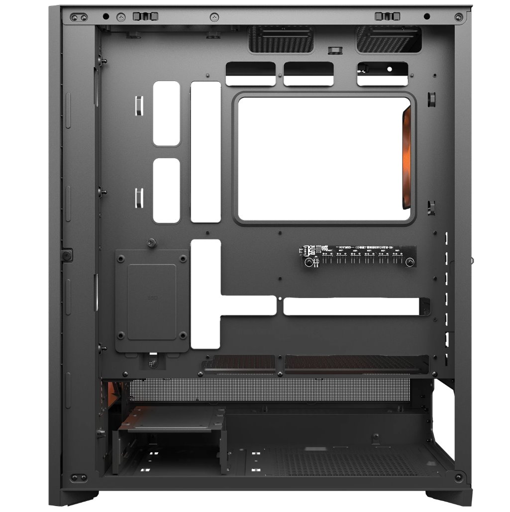 Skříň je vyrobena z kvalitních materiálů, které zajišťují tuhost a dlouhou životnost. Boční panel je dostatečně prostorný pro volbu mezi solidním plechem nebo instalací skleněného panelu pro prezentaci komponent.