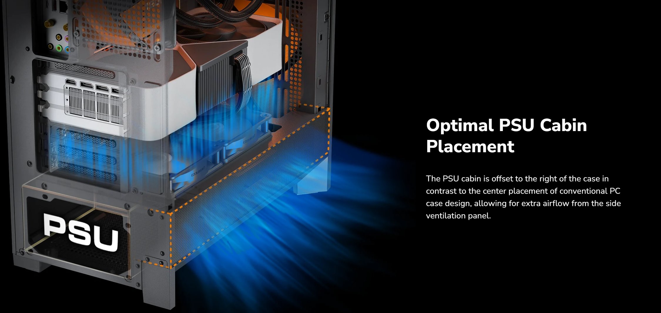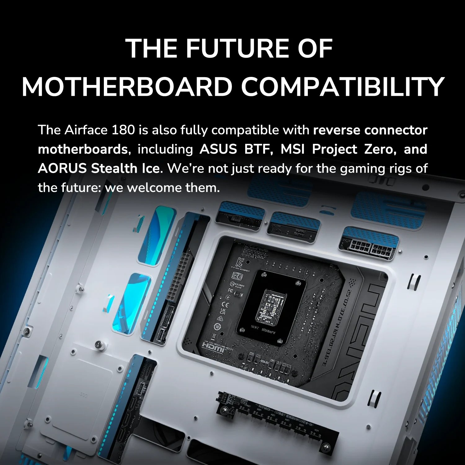 Airface 180 nabízí chytré řešení pro vedení kabelů, které pomáhá udržet interiér čistý a dobře organizovaný. Díky tomu se zlepšuje nejen estetika sestavy, ale i proudění vzduchu, protože kabely nejsou v cestě chladicímu toku.