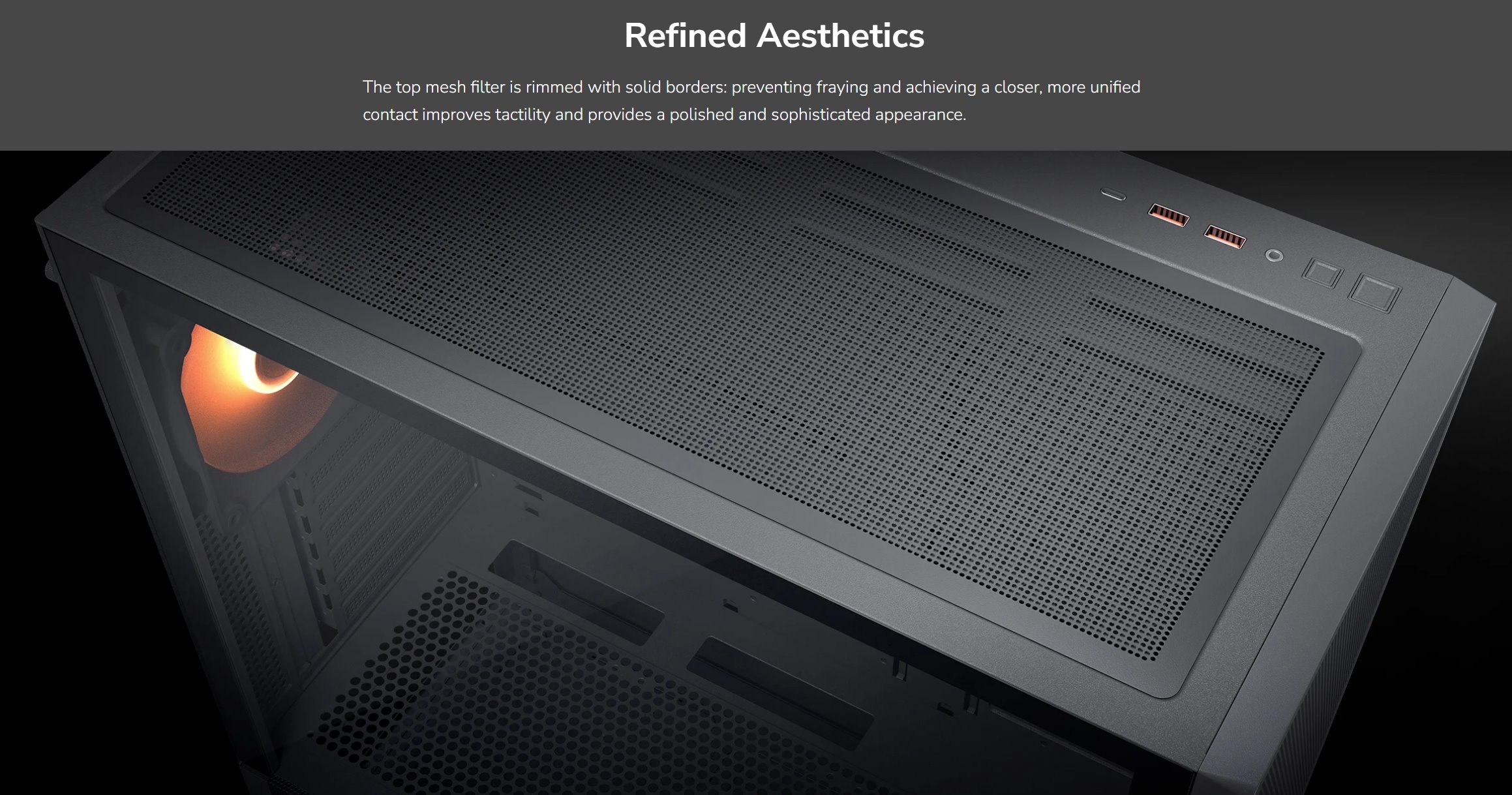 Díky promyšlenému vnitřnímu uspořádání, snadné údržbě (magnetické prachové filtry) a špičkovému chladicímu potenciálu je ideálním základem pro jakýkoliv moderní herní stroj.