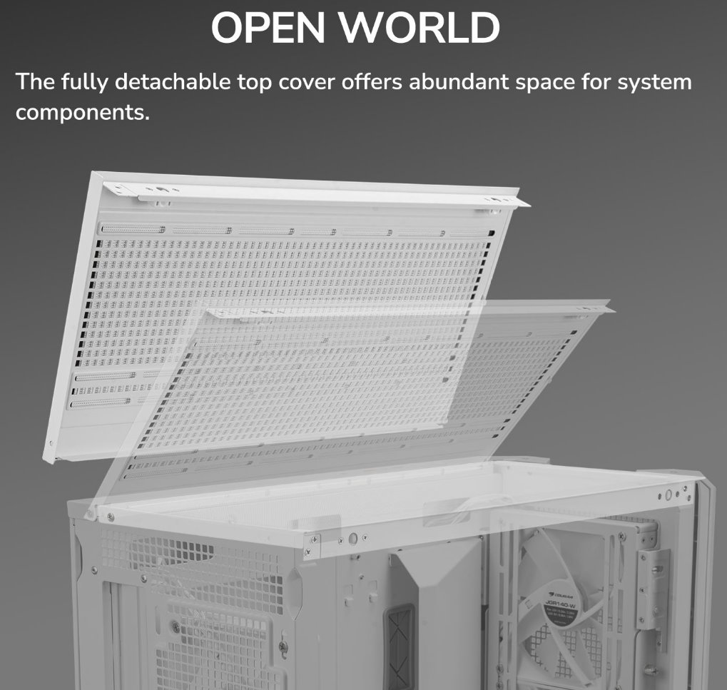 Its front fan bracket design streamlines setup by allowing installation of front fans or water cooling without removing the front panel. The fully detachable top cover offers abundant space for system components, and an easily removable PSU cabin cover lets you install or change without hassle. Fans or a 360mm water cooling system can be directly mounted on the top cover, securely fixed when reattached.