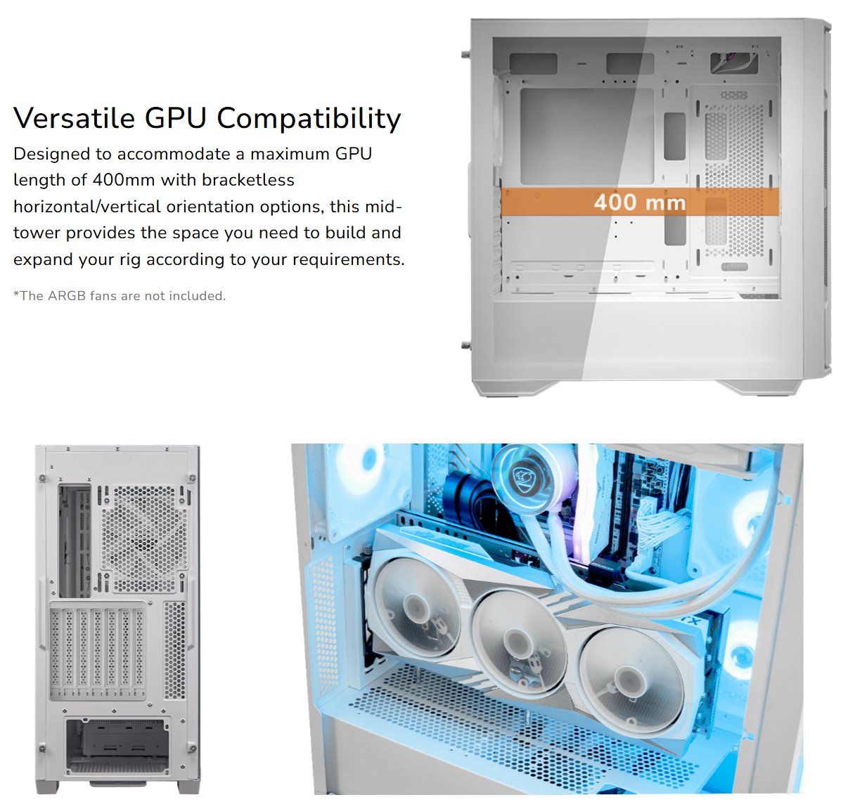 - Accommodates maximum GPU length of 400mm.