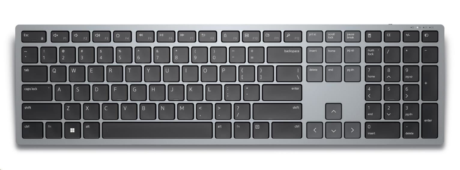 Dell Multi-Device Wireless Keyboard KB700 je ergonomická bezdrátová klávesnice navržená pro pohodlné a efektivní psaní. Má české a slovenské QWERTZ rozložení a umožňuje rychlé přepínání mezi více zařízeními pomocí technologie Bluetooth nebo USB přijímače. Díky bezdrátovému připojení se zbavíš kabelů a získáš větší volnost při práci doma i v kanceláři.