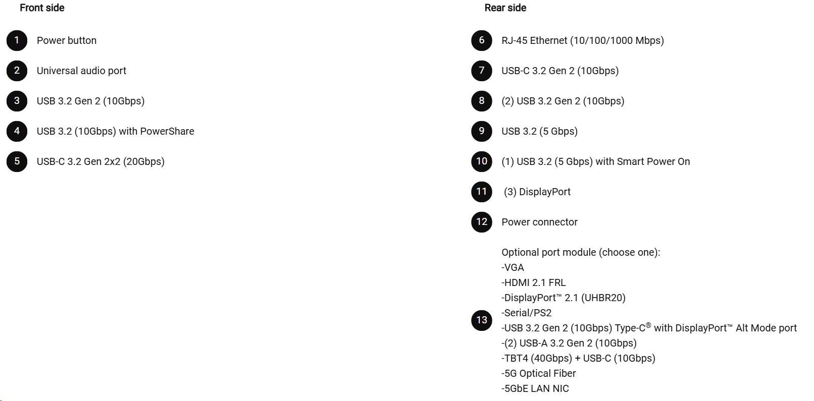 Dell Pro Max Micro disponuje moderními porty včetně USB-C, USB 3.2, HDMI a RJ-45 Ethernet pro připojení periferií, monitorů a sítí. Počítač je dodáván s českou klávesnicí a myší, a díky kompaktnímu Micro-Tower provedení šetří místo na pracovním stole. Součástí balení je 280 W napájecí adaptér a tříletá záruka ProSupport NBD pro rychlou servisní podporu.:contentReference[oaicite:3]{index=3}