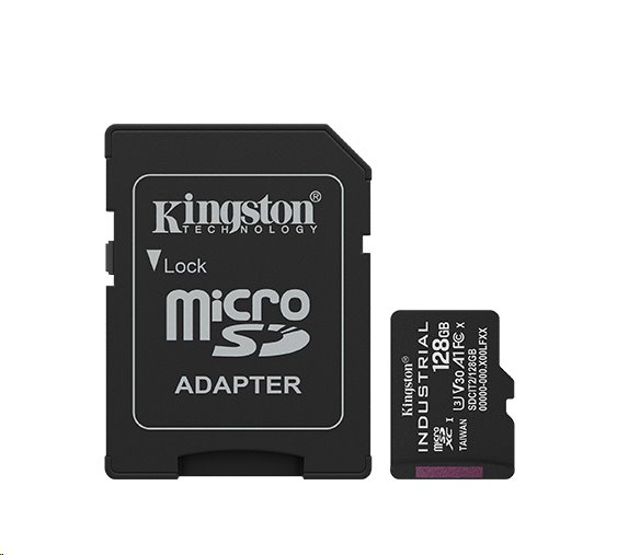 Kingston paměťová karta 128GB Industriální micro SDXC UHS-I C10 (čtení/zápis: 100/80MB/s) + SD adaptér