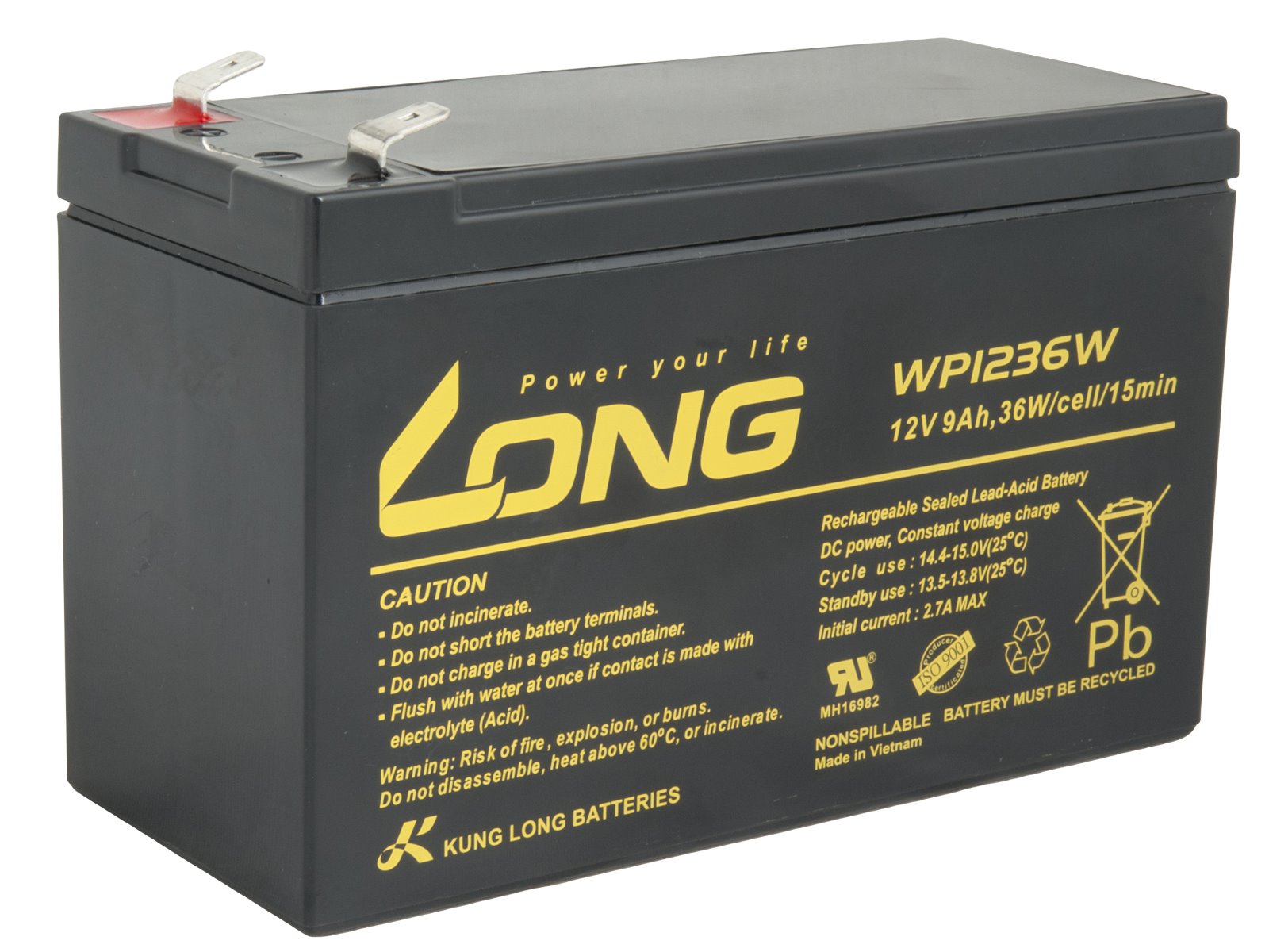 LONG baterie 12V 9Ah F2 HighRate (WP1236W)