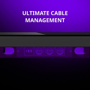 • LORGAR stůl s nastavitelnou výškou, bezdrátovou nabíječkou, RGB osvětlením a USB porty, dřevěná deska, černý