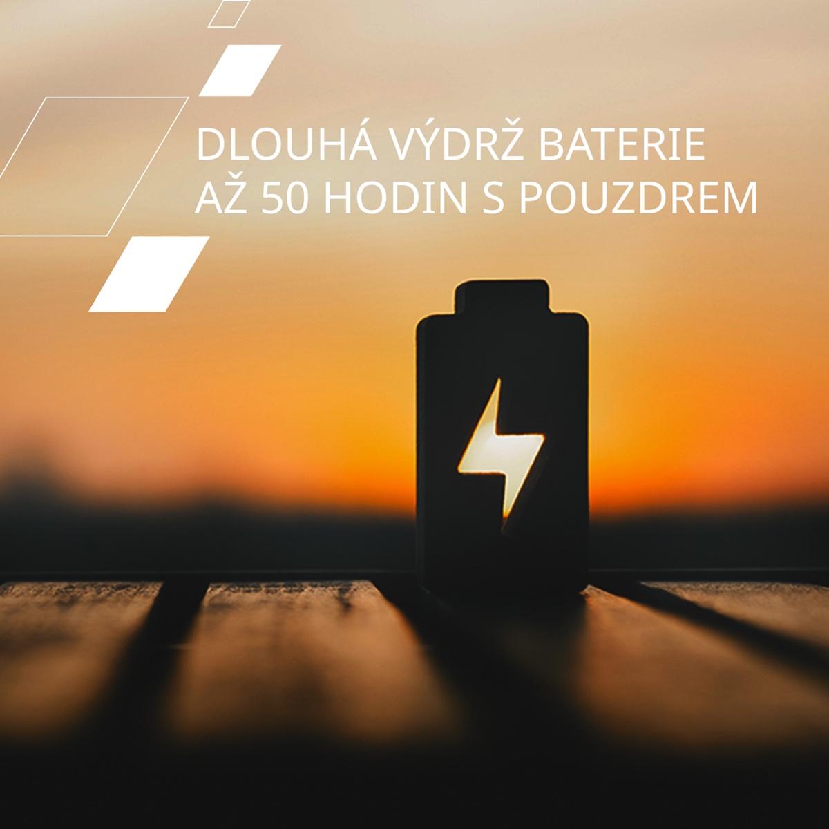Dlouhá výdrž baterie: až 50 hodin s nabíjecím pouzdrem