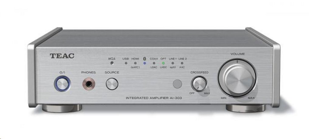TEAC AI 303 je vysoce kvalitní USB DAC / integrovaný stereo zesilovač, navržený pro moderní domácí audio systémy - od desktopového Hi Fi až po televizní sestavy. Nabízí výkon, který dalece přesahuje jeho kompaktní šířku pouhých 215 mm, a podporuje nejnovější digitální formáty včetně DSD až 11.2 MHz, PCM 384 kHz / 32 bit, HDMI ARC/eARC, Bluetooth LDAC/aptX HD a mnoho dalších.