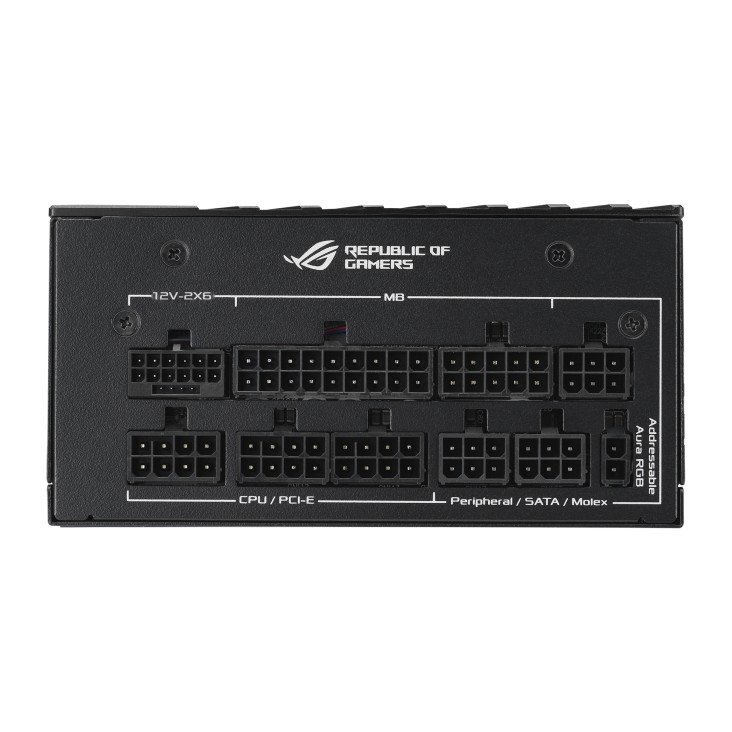 Zdroj je plně modulární, disponuje 2× CPU 4+4-pin, 1× 16-pin a 3× PCIe 8-pin pro GPU, navíc 6× SATA a 4× Molex. Deklarovaná MTBF > 120 000 hod, certifikace Cybenetics Platinum a Lambda A potvrzují efektivitu i nízkou hlučnost. Součástí balení je ATX›SFX adaptér a ARGB kabel pro Aura Sync podsvícení ventilátoru.
