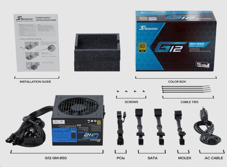 Seasonic G12 GM – 850 W je napájecí zdroj ve formátu ATX s certifikací 80PLUS® Gold, který nabízí vysokou účinnost a stabilní výkon. Využívá technologii LLC resonant converter a inteligentní řízení ventilátoru Smart and Silent Fan Control (S2FC) pro tichý provoz. Díky semi-modulární kabeláži je instalace přehledná a umožňuje lepší správu kabelů.