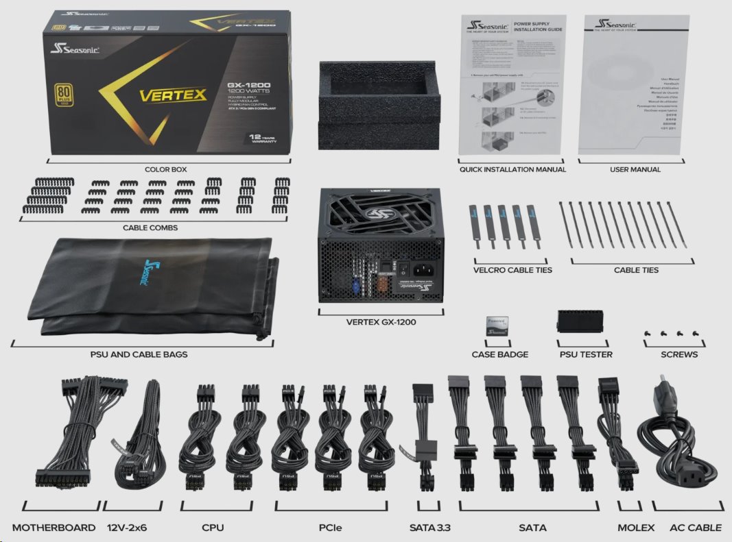 • Zdroj Seasonic VERTEX GX ATX 3.1 - 1200W, 80+ Gold, modular
